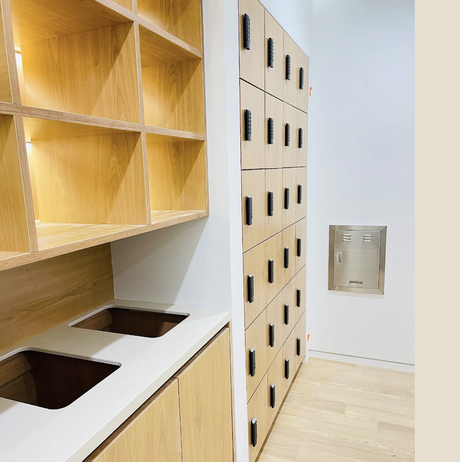 使用目的や設置場所に合わせて、美しく収まるオーダーロッカーも制作いたします。お気軽にご相談ください。